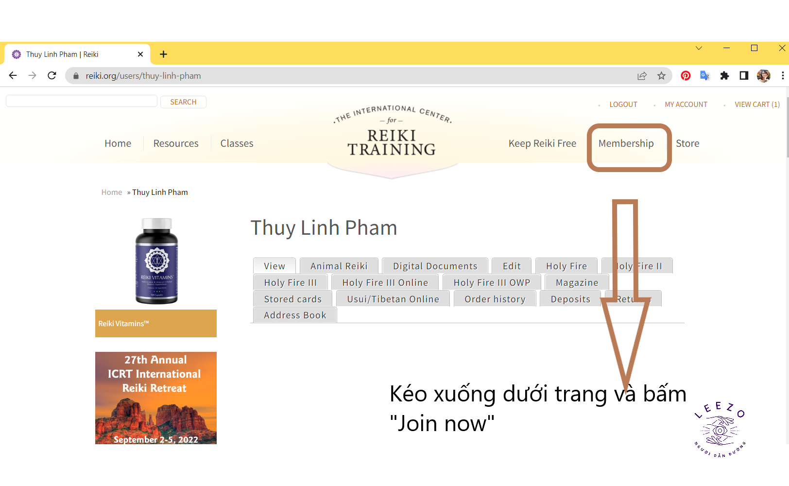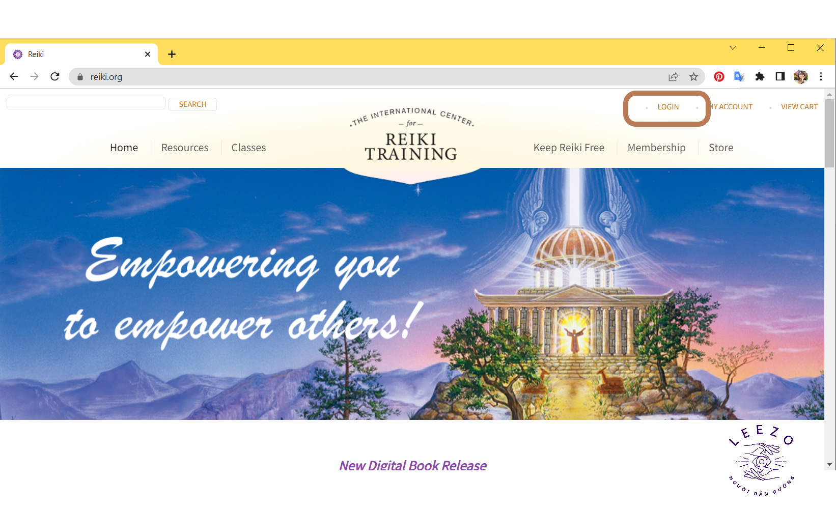Bước 1: Truy cập website https://www.reiki.org/ , bấm vào phần Login