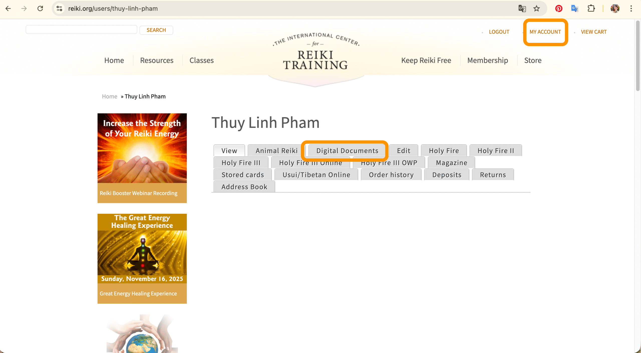 Bước 3: Sau khi tạo accout và Log in, Bạn vào phần “My account” để xem các tài nguyên của mình. Trong đó mục “Digital Document” là các tài liệu kỹ thuật số, các ấn phẩm sách mà Bạn hoặc Master của Bạn mua cho Bạn thông qua địa chỉ email Bạn đăng ký.