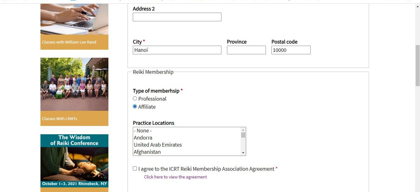 Tiếp đó, Bạn điền các thông tin như trang web hiển thị. Ở mục “Type of membership” có 2 lựa chọn khác nhau về giáo viên, còn toàn bộ chương trình dạy học đều theo khung tiêu chuẩn của ICRT