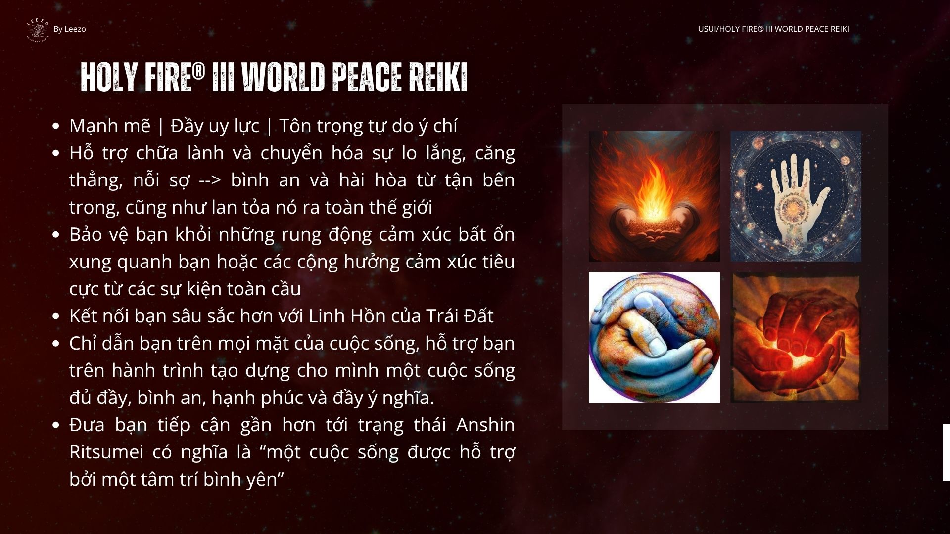 Khóa học Usui/Holy Fire® III World Peace Reiki từ Reiki Master Leezo